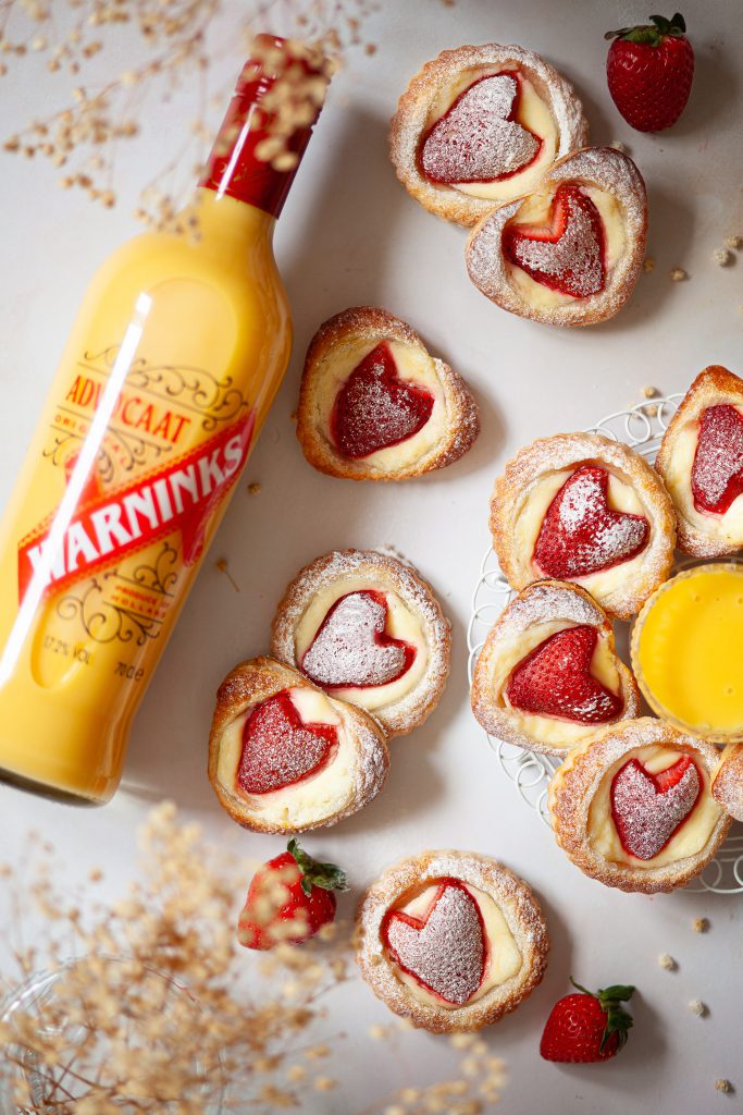 Crisp and flaky puff pastry tarts laden with Warninks Advocaat laced cream cheese and a plump strawberry make a quick and easy to assemble sweet treat for dessert, afternoon tea or just because you feel like a little indulgence.